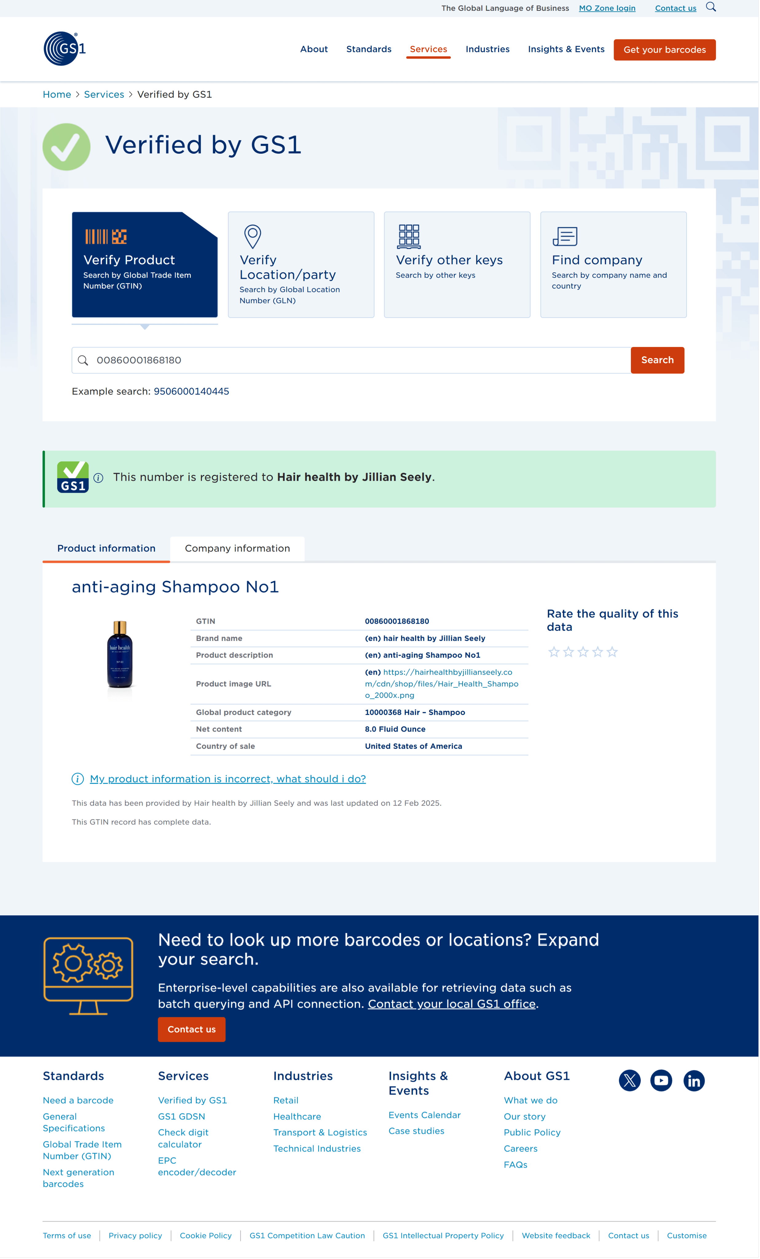 Default Domain, id.gs1.org takes user to GS1 Data Hub - 'Verified by GS1'. Consumer is able to verify both company and product information